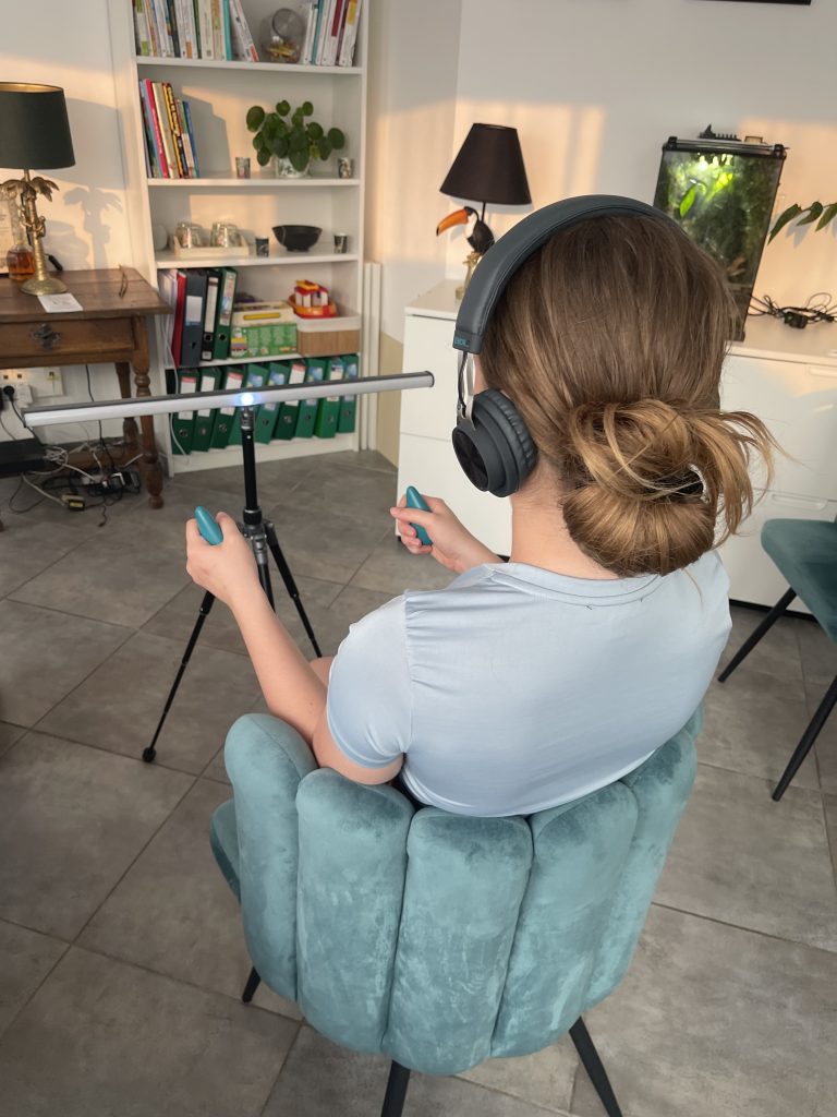 Je suis équipée d’un matériel spécifique pour l’EMDR afin de pouvoir ajouter des stimulations tactiles (vibreurs) et auditives (casque) aux stimulations visuelles (barre lumineuse). Cela permet une stimulation plus complète.